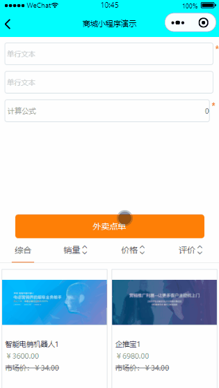 4.在小程序编辑页面,拖入“外卖点单”插件,可以对该插件进行“属性设置”及“样式设置”,设置完成后,点击保存即可,如图所示: