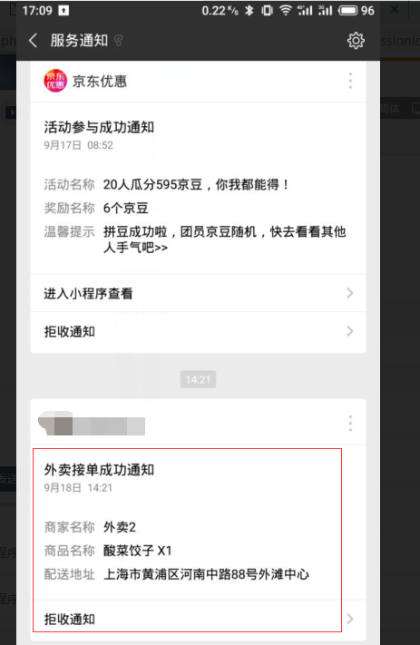 1.后台点击“邮件/短信/微信”-“微信”,选择推送模板-外卖接单成功通知,点击编辑-“点击生成模板”,然后点击确认,开启自动发送即可,如图所示: